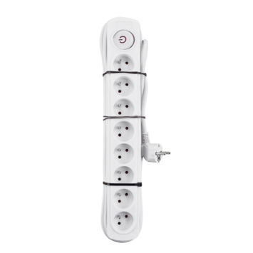 Op deze Handson Stekkerdoos wit 3 Meter bevinden zich 8 contactdozen waarop je maximaal 8 elektronische apparaten tegelijkertijd aansluit. Zo vergroot je het aantal stopcontacten in huis of op kantoor in een handomdraai. De witte stekkerdoos gebruik je onder meer om printers of computers op kantoor aan te sluiten, maar bijvoorbeeld ook om huishoudelijke apparatuur in de keuken of bijkeuken van stroom te voorzien. Met behulp van de schakelaar schakel je de contactdozen zelf aan of uit.