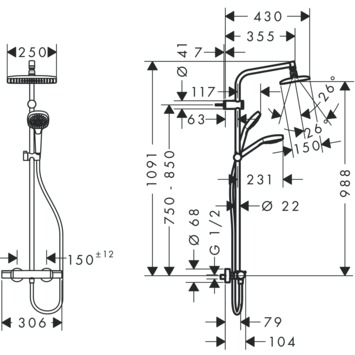 Deze regendoucheset heeft afmetingen van 109,1 cm in hoogte, 30,6 cm in breedte en 43 cm in diepte, waardoor hij geschikt is voor zowel grote als kleine badkamers. De doucheslang van 160 cm is uitgerust met een anti-twist functie, zodat de slang niet in de knoop raakt tijdens het douchen. De set wordt geleverd met al het benodigde bevestigingsmateriaal, waardoor de installatie eenvoudig is, zelfs voor beginners. Met de Hansgrohe MySelect E 240 regendoucheset maak je van je dagelijkse douche een moment van luxe en ontspanning.