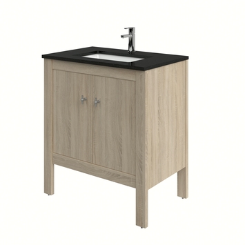 , wastafelblad van zwart natuursteen met porseleinen kom