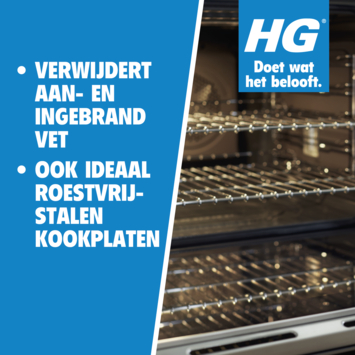 De HG oven, grill & barbecue reiniger 500ml verwijdert snel en grondig al het aangebrande en zelfs ingebrande vet uit ovens, grills en barbecues. De werking van HG oven, grill & barbecue reiniger wordt versterkt door de te reinigen oppervlakken handwarm te verwarmen. Besproei het oppervlak en laat de reiniger 3 tot 5 minuten inwerken. Maak het oppervlak nu schoon met een natte spons. Nadat al het vet is verwijderd, de oven of grill nogmaals goed schoonmaken met heet water. Bij sterk vervuilde ovenbakplaten of barbecueroosters de behandeling enige malen herhalen.