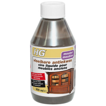 HG meubels antiekwas is een vloeibare antiekwas. De was voedt antieke meubels op een natuurlijke manier en voorkomt uitdroging door er een glanzende, vuilafstotende film op te leggen. Dit product is enkel geschikt voor donkere houtsoorten.