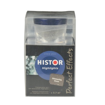 Histor Perfect Effects Highlights muurverf transparant glimmer stone 750 ml geeft een speciaal accent aan jouw muren en plafonds door de glanzende deeltjes in deze muurverf. Histor highlightverf is verkrijgbaar in vier varianten, van een ingetogen schittering tot expressieve glamour. Je kiest zelf een basiskleur en deze transparante hightlight effecten maken het helemaal af. De verf laat zich voornamelijk mooi combineren met wit-, grijs- en zwarttinten. De inhoudsmaat is 750 ml.