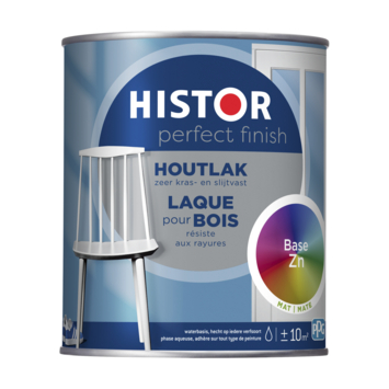 Histor Perfect Finish houtlak is geschikt voor het aflakken van hout, metaal en kunststof. De lak is zeer kras- en slijtvast en extra dekkend. De lak is op waterbasis en kan gebruikt worden over elke vorige verfsoort heen, dus ook over terpentineverf. De verf is makkelijk aan te brengen en is sneldrogend. Na 1 uur is de verf stofdroog en na 5 uur overschilderbaar. Verf op terpentinebasis in lichte kleuren kan bij weinig daglicht vergelen. Histor Perfect Finish is een watergedragen houtlak en vergeelt daarom niet en behoudt zijn kleur. Daarnaast is de verf geurarm.