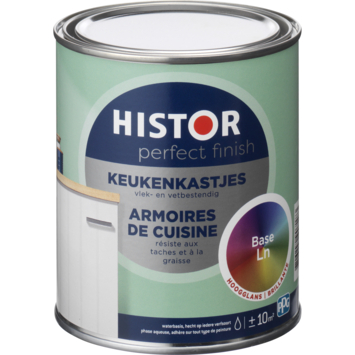 Histor Perfect Finish keukenkastjes is speciaal ontwikkeld voor het schilderen van houten of kunststof keukenkastjes. De lak is zeer geschikt voor gebruik in de keuken, want hij is vlek- en vetbestendig. Daarnaast is hij kras- en slijtvast en goed afneembaar. De lak is op waterbasis en kan gebruikt worden over elke vorige verfsoort heen, dus ook over terpentineverf. De verf is makkelijk aan te brengen en is sneldrogend. Na 1 uur is de verf stofdroog en na 5 uur overschilderbaar. Deze verf is alleen te mengen in lichte kleuren.