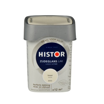 Histor Perfect Finish lak ivoor zijdeglans 750 ml is een terpentinegedragen lak met een zijdeglans. De lak dekt goed en is kras- en slijtvast. De Perfect Finish lak is geschikt voor het aflakken van hout en andere ondergronden. Deze lakverf heeft een droogtijd van ongeveer 3 uur en is na 16 uur overschilderbaar. Roer de lak voor gebruik goed door. Naast de standaard beschikbare kleuren is deze verf in meer dan 30.000 verschillende kleuren te verkrijgen bij onze verfmengbalie in de GAMMA bouwmarkt. Witte en lichte tinten op terpentinebasis kunnen bij weinig daglicht vergelen, in dit geval kan je het beste Histor Perfect Finish acryl lak gebruiken. De inhoudsmaat is 750 ml.
