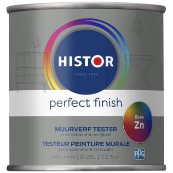 Histor Perfect Finish muurverf is een extra dekkende muurverf, ideaal voor alle muren in uw huis. Eenmaal aangebracht bent u verzekerd van een matte uitstraling die langdurig mooi blijft. Voor het beste resultaat kunt u het beste vooraf een dekkende voorstrijk gebruiken. Zorg voor stijlvolle, matte muren in huis met Histor Perfect finish muurverf.