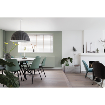 Hele mooie kleur, zoals ook weergegeven. Rolt goed uit en heeft een perfecte dekking.