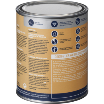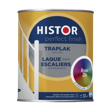 Histor Perfect Finish traplak is speciaal ontwikkeld voor het schilderen van houten trappen binnenshuis. De lak is anti-slip en voelt een beetje stroef aan, hierdoor voorkom je uitglijden. De lak is zeer kras- en slijtvast, extra dekkend en geurarm. De lak is op waterbasis en kan gebruikt worden over elke vorige verfsoort heen, dus ook over terpentineverf. Voor het beste resultaat raden wij eerst het gebruik van grondverf aan. De verf is makkelijk aan te brengen en je trap is snel weer beloopbaar. Na 1 uur is de verf stofdroog en na 5 uur overschilderbaar.