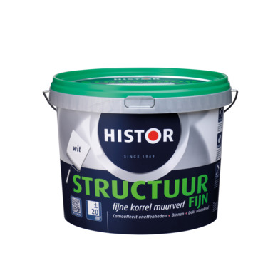 Histor Structuur muurverf wit fijn 5 liter is een matte muurverf met een fijne korrelstructuur, geschikt voor muren en plafonds binnenshuis. Deze uitstekend dekkende muurverf camoufleert kleine oneffenheden op uw muur en is hierdoor ook geschikt voor het renoveren van de muren. Daarnaast is Histor Structuur muurverf fijn door de korrelstructuur heel sterk, waardoor de verf geschikt is voor intensief gebruikte ruimtes zoals trappenhuis en gang. De verf is ook goed overschilderbaar in een andere kleur.