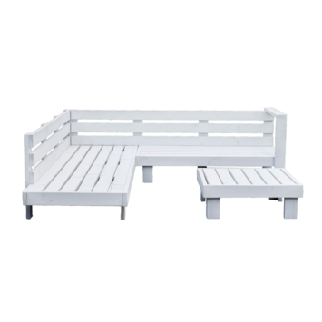 De Handmade hoekbank Toronto is gemaakt van wit steigerhout en biedt ruimte voor maar liefst 5 personen. Deze royale hoekbank is ideaal om een gezellige en comfortabele plek te creëren. Maak de set compleet met de bijpassende luxe Bari kussens en creëer jouw perfecte relaxplek! De hoekbank heeft een hoogte van 25 cm, een diepte van 204 cm en een breedte van 230 cm. Let op: De Bari kussens moeten apart worden besteld. Het benodigde aantal kussens is: 5 kussensets Bari plof (artikelnummer 582675) en één los rugkussen Bari (artikelnummer 582690).