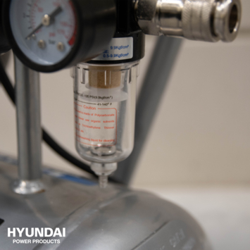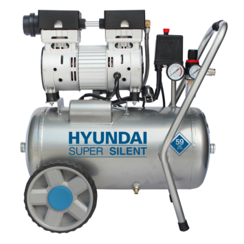 Schoonblazen, oppompen of pneumatisch aandrijven? Deze oerdegelijke, maar krachtige Hyundai compressor zorgt voor lucht in elke situatie, De machine zuigt lucht aan, perst het samen in de riante 24 liter ketel en laat het vervolgens gedoseerd los via de slang of het gekoppelde hulpgereedschap, Een zeer flexibel apparaat voor het schoon- en wegblazen van vuil, het oppompen van allerlei banden en materialen en het aandrijven van (industriële) apparaten en gereedschappen, Een olievrije compressor geschikt voor zowel de professional als doe-het-zelf'er, Deze speciaal uitgevoerde Hyundai compressor is voorzien van een zeer stille motor, waardoor het geluidsniveau minimaal is; slechts 59 dB, Ideaal voor gebruik op plekken waar veel geluid voor veel overlast zorgt, Bovendien is de compressor zeer stabiel door de extra stevige uitvoering; vier voetsteunen met anit-vibratie doppen, Deze compressor is voorzien van een vochtafscheider, tankdrukmeter, drukregelaar, druk-regelaarmeter en een orion/eu snelkoppeling waardoor luchtgereedschap gemakkelijk is aan te sluiten, Unieke specificaties; - Schoonblazen, oppompen en pneunmatisch aandrijven, - Voltage; 230V - 50 Hz, - Ketel inhoud; 24 liter, - Maximale werkdruk; 8 bar, - Motor vermogen: 750W / 1,0 PK, - Aantal cilinders; 2, - Volledig olievrij, - Diameter cilinder; 42mm, - Toerental; 13500 per/minuut, - Isolatieklasse motor; B, - Aanzuigvermogen; 125 liter/min, - Geluidsniveau; slechts 59dB(!), - Anti-vibratie ondersteuning; 2 voetsteunen, - Eenvoudig verrijdbaar dankzij 2 soepele, anti-lek wielen, - Inclusief geïntegreerde anti-tuimel beugel, - Afmeting in gebruik; 36x55x59cm - Gewicht; 22 kilogram, - Garantie; 2 jaar, - Geleverd met vochtafscheider, tankdrukmeter, drukregelaar, druk-regelaarmeter en een orion/eu snelkoppeling,