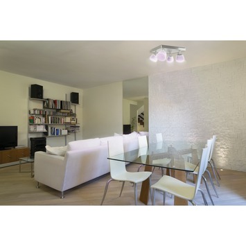 De Emerald quatroplaat van 4 x 6 watt of 345 lumen is een van de vele lampen uit de unieke iDual collectie. De ultramoderne quatroplaat is richtbaar, vierkant en gemaakt uit geborsteld nikkel en mat glas. Wat er zo uniek is aan deze collectie? Je kan de ledlampen makkelijk dimmen, evenals de lichtkleur aanpassen om in geen tijd de perfecte sfeer of stemming te creëren. Inclusief afstandsbediening.