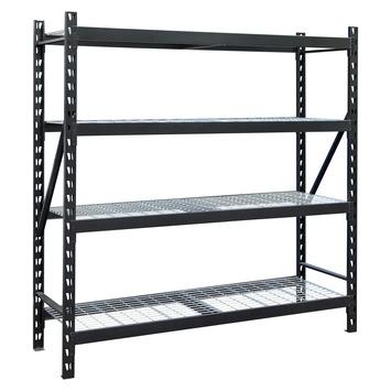 Het rek heeft een stalen kaden van industriele kwaliteit en is afgewerkt met een zwarte coatingmet textuur, zodat vuil en krassen niet zichtbaar zijn.