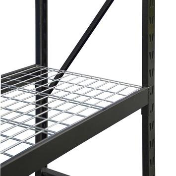 Het rek heeft 4 leggers van metaaldraad met een grijze coating. Elke legger kan mar liefst 500kg dragen.