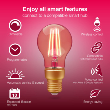 Met dit slimme peertje met grote E27 fitting geef je jouw bestaande armatuur een enorme upgrade. Voortaan kun je het licht draadloos bedienen, zelfs als je niet thuis bent.