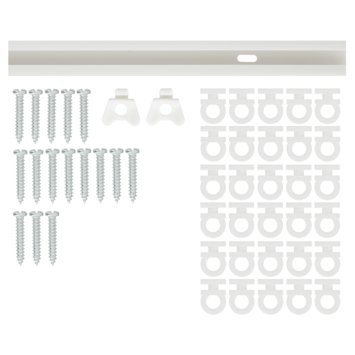 De Intensions complete set gordijnrail Basic wit 300 cm is het instapmodel binnen ons gordijnrailassortiment. De rail heeft een lengte van 300 cm en is gemaakt van kunststof. De rail is voorzien van ponsgaten waardoor de rail direct tegen het plafond geschroefd kan worden. De rail wordt compleet geleverd met 36 runners, eindstoppers en 19 schroeven. De rail is uitgevoerd in de kleur wit. Voor de gordijnrail Basic zijn extra runnners of wandsteunen los verkrijgbaar.