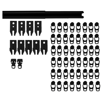 De Intensions complete set uitschuifbare gordijnrail Plus zwart 210-400 cm is een mooie en goede basisrail welke gemaakt is van metaal. De rail is slank vormgegeven en is uitgevoerd in de kleur zwart. Het handige van deze rail is dat die uitschuifbaar is. De rail heeft dus geen vaste maat maar past altijd tussen een breedte van 210 cm tot 400 cm. Op deze manier hoef je de gordijnrails niet op maat te zagen. Let er wel op dat de gordijnen wat stroever kunnen glijden bij het stuk waar je de rail kunt uitschuiven. Het gebruik van een trekstang wordt aangeraden. De uitschuifbare Plus rail wordt helemaal compleet geleverd inclusief 9 montagesteunen geschikt voor plafondmontage, 48 runners om de gordijnen aan op te hangen en 2 eindstoppers om de rail af te sluiten. De rail is geschikt om alle type plooigordijnen aan op te hangen. Bij deze rail kunnen diverse accessoires gekocht worden zoals montagesteunen voor montage aan de wand, 2 soorten bochten en diverse onderdelen.