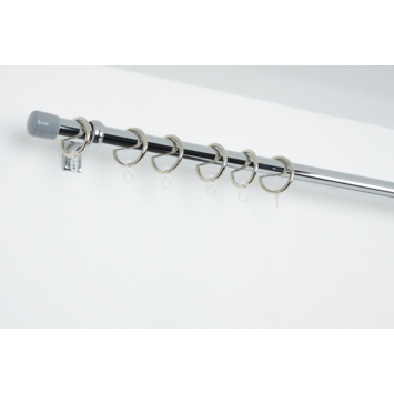Deze gordijnringen in de kleur chroom zijn geschikt voor 19 mm gordijnroedes. Deze gordijnringen worden geleverd per 12 stuks en zijn inclusief een transparant kunststof overklikoog waar je de gordijnhaken aan kunt ophangen. Je hebt ca. 10 ringen per meter breedte nodig. Perfect te combineren met de 19 mm gordijnroedes chroom van Intensions.