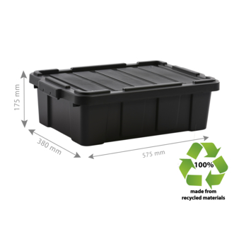 De robuuste Powerbox opbergbox van IRIS Ohyama is vervaardigd uit extra sterk kunststof en bestaat volledig uit 100% gerecycled materiaal. Deze set bevat 3 boxen met elk een capaciteit van 25 liter. De boxen zijn voorzien van een deksel met stevige kliksluiting en zijn ideaal voor doe-het-zelvers of voor iedereen die behoefte heeft aan een sterke opbergoplossing. Dankzij het nestbare ontwerp en de stabiele deksel zijn de boxen eenvoudig te stapelen. De Powerbox is geschikt voor gebruik zowel binnen als buiten, bijvoorbeeld in de garage voor het opbergen van gereedschap. Bovendien kunnen de boxen dankzij de uitsparingen in de deksel met een spanband bijeengehouden worden voor extra veiligheid.