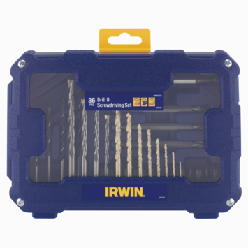 IRWIN set IW6062523 is een 36-delige boren-/bitset. 4 steenboren (5, 6, 7 en 8mm), 8 metaalboren (1.5, 2, 2.5, 3, 3.5, 4, 5 en 6mm), 5 houtboren (3, 4, 5, 6 en 8mm) en een mix van de meest gangbare bits + magnetische bithouder. Overzichtelijk verpakt in een stevige kunststof box.