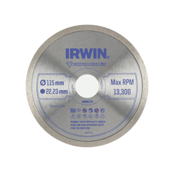 Irwin Pro Performance diamantzaagblad IW8087101 past op alle gangbare 115mm haakse slijpers. Het zaagblad heeft een volle rand en is geschikt voor het doorslijpen van keramiek en tegels. Diameter diamantblad: 115mm.