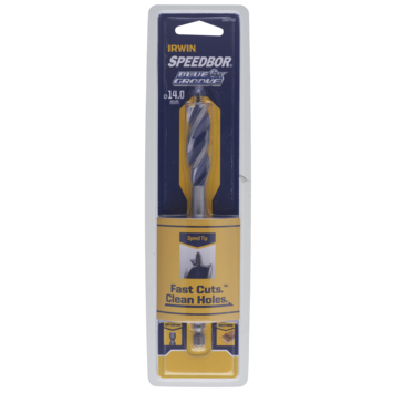IRWIN Blue Groove houtboren zijn IRWINS beste houtboren. Zes keer sneller dan standaard speedboren. De schroefpunt trekt de boor snel en nauwkeurig door het hout. De drievoudige spaangroef voert zaagsel zeer snel af en voorkomt vastlopen. De boor is over de volledige lengte warmtebehandeld voor een lange levenduur. IRWIN houtboor 10507602 heeft boordiameter 14mm. Lengte boor: 150mm.