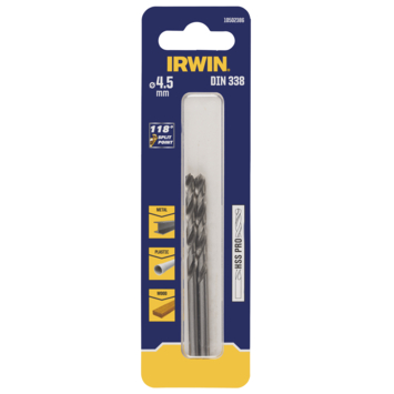 De IRWIN HSS PRO metaalboor van 4,5 mm heeft een werklengte van 47 mm en een totale lengte van 80 mm. In één verpakking zitten 2 stuks. Door te voldoen aan DIN 338 ben je verzekerd van een boor met precieze maatvoering en hoogwaardige uitvoering voor metaalboren.