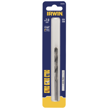 De IRWIN HSS PRO metaalboor van 7 mm heeft een werklengte van 68 mm en een totale lengte van 109 mm. In de verpakking zit 1 stuk. Door te voldoen aan DIN 338 ben je verzekerd van een boor met consistente maatvoering en hoogwaardige kwaliteit voor boorwerk in metalen.