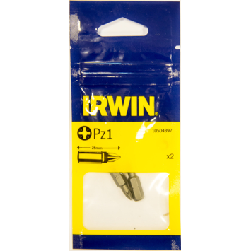 IRWIN 10504397 is een Pozidriv schroefbit Pz1 met een lengte van 25mm. Geschikt voor alle accuschroefboormachines. Inhoud: 2 stuks. Nauwkeurig vervaardigd volgens de laatste technieken van de hoogste standaard.