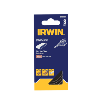 De Irwin schuurband IW8083803 is onder andere geschikt voor de Black+Decker Powerfile (BD280/290/282E/292E, KA290 en KA292E). De schuurband heeft korrelgrootte 60. Dit zorgt voor een zeer grove afwerking, maar schuurt wel lekker snel. Deze superkwaliteit schuurband meet 13x451mm. Inhoud: 3 stuks.