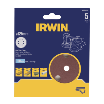 Irwin schuurschijf rond Ø125 mm zelfhechtend K180, 5 stuks