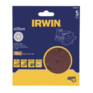Irwin schuurschijf rond Ø125 mm zelfhechtend K40, 5 stuks