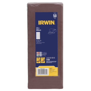 Irwin 1/2vel schuurstroken IW8083102 zijn geschikt voor alle vlakschuurmachines met schuurzoolafmeting 115x230mm en klembevestiging. Deze voordeelverpakking bevat diverse korrelgrootten: 15x K60, 20x K100 en 15x K150. Voor grove en fijne afwerking. Afmeting schuurstrook: 115x280mm. Inhoud: 50 stuks.