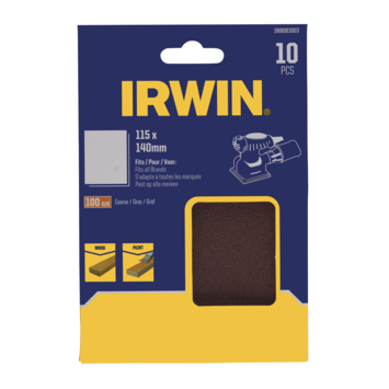 IRWIN 1/4vel schuurstroken IW8083003 zijn geschikt voor vlakschuurmachines met schuurzoolafmeting 114x114mm en klembevestiging. De schuurvellen hebben korrelgrootte 100. Dit zorgt voor een medium afwerking. De schuurstroken zijn niet voorzien van perforatie en klittenband. Afmeting schuurstook: 115x140mm. Inhoud: 10 stuks.