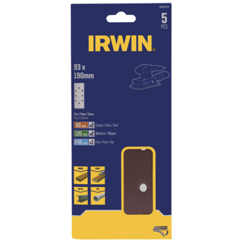 Irwin schuurvel 190x93 mm K80/K120/K240 zelfhechtend, met perforatie voor B+D 5 stuks
