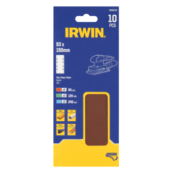Irwin schuurvel 190x93 mm K80/K120/K240 zelfhechtend, met perforatie voor Bosch 10 stuks