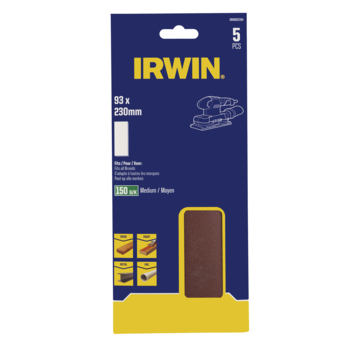 De Irwin 1/3vel schuurstroken IW8083704 zijn geschikt voor alle vlakschuurmachines met schuurzoolafmeting 189x91mm en klembevestiging. De schuurvellen zijn niet voorzien van perforatiegaten en hebben korrelgrootte 150. Dit zorgt voor een fijne afwerking, maar schuurt wel iets minder snel. Afmeting schuurstrook: 230x93mm. Inhoud: 5 stuks.