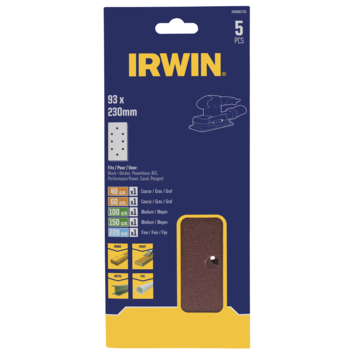 Irwin schuurvel 230x93 mm K40/K60/K100/K150/K220 voor klembevestiging, met perforatie voor B+D 5 stuks