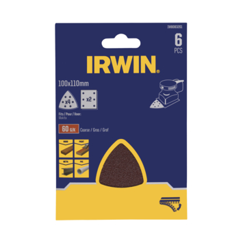 De Irwin schuurstroken IW8083201 zijn geschikt voor schuurmachines van het merk Makita type Tristar. De set bestaat uit 4 driehoek- en 2 rechthoekvellen. De schuurvellen hebben korrelgrootte 60. Dit zorgt voor een zeer grove afwerking. Dankzij de zelfhechtende laag en klittenbandbevestiging zijn de schuurstroken eenvoudig te bevestigen en is er nauwelijks speling tussen schuurvel en machine. Dat zorgt voor een hogere afname.