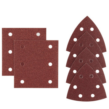 De Irwin schuurstroken IW8083202 zijn geschikt voor schuurmachines van het merk Makita type Tristar. De set bestaat uit 4 driehoek- en 2 rechthoekvellen. De schuurvellen hebben korrelgrootte 80. Dit zorgt voor een grove afwerking. Dankzij de zelfhechtende laag en klittenbandbevestiging zijn de schuurstroken eenvoudig te bevestigen en is er nauwelijks speling tussen schuurvel en machine. Dat zorgt voor een hogere afname.