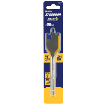 IRWIN Blue Groove speedboor 10502817 is een platte houtboor geschikt voor het boren van gaten met een grote diameter in hout, laminaat en spaanplaat. De speedboor heeft een gecentreerde punt met snijvlakken en is gemaakt van chroom vanadium staal. IRWIN speedboren hebben een dikkere snijrand voor een langere levensduur en een zeskantige schacht om slippen tegen te gaan. Boordiameter: 26mm. Lengte boor: 152mm.