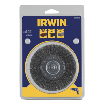 IRWIN staaldraadborstel IW8088421 bevestig je op een boormachine voor grof schuurwerk. Geschikt voor het schuren van steen, beton, staal. Ideaal voor het reinigen van voegen in metselwerk. Diameter: 100mm. Dikte: 10mm.
