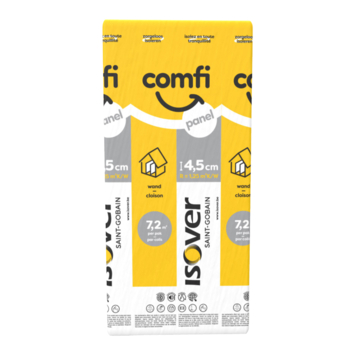 De Isover Comfi® Panel glaswolplaat 60 x 120 cm met een dikte van 4,5 cm en een totale oppervlakte van 7,20 m² (10 stuks) zorgt voor een betrouwbare isolatie van muren, plafonds en scheidingswanden. Deze glaswolplaat heeft een warmteweerstand van R = 1,25, wat betekent dat hij goed helpt om warmte binnen te houden in de winter en buiten te houden in de zomer. Je vindt dit product in de webshop onder artikelnummer 208299.