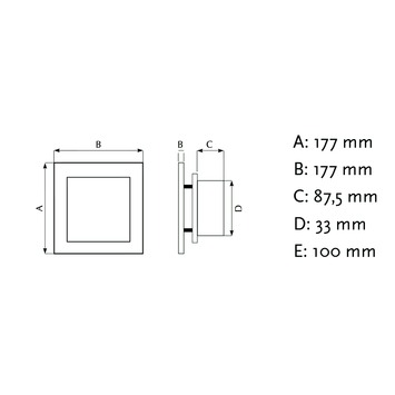 IVC Air Design inbouwventilator met hygrometer Ø 100 mm vierkant
