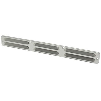 Het aluminium IVC Air-schoepenrooster Brut heeft een afmeting van 37cm bij 4cm. Dit rooster gebruik je om ventilatiekanalen af te dekken. Jij monteert het schoepenrooster eenvoudig op buitenmuren, deuren of kozijnen. Zo zorgt het aluminium schoepenrooster voor natuurlijke ventilatie, maar het kan ook dienen als toevoer- of afvoerrooster van mechanische ventilatie. Door de vorm van het schoepenrooster Brut kan regen niet inslaan en wordt het ventilatiekanaal niet nat. Bovendien is het sterke aluminium rooster duurzaam en onderhoudsvrij. Eventueel kan je het 37x4cm grote schoepenrooster voorzien van vliegengaas om ook insecten te weren uit het ventilatiekanaal. De ventilatie van jouw woning blijft dan optimaal.