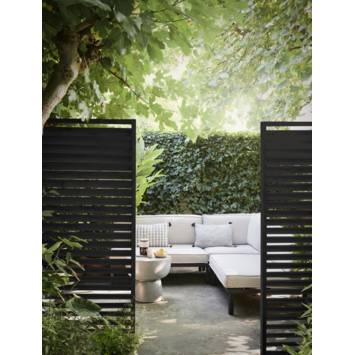 Het Jaloeziescherm is gemaakt van meerdere lamellen voor een shuttereffect. Het lamellenscherm ook gekend als een shutterscherm is gemaakt van geïmpregneerd geschaafd vuren hout. Door het impregneren van het hout is dit scherm beter beschermd tegen weersomstandigheden. Dit scherm is ideaal te gebruiken voor bijvoorbeeld tussen een regulier tussenschermen voor of als afscheiding onder een overkapping. De totale dikte is ca. 8 cm en heeft hierdoor een robuuste uitstraling.