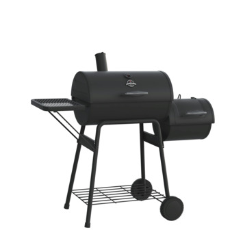 De Jamestown Smoker Aldon is een ideale houtskool BBQ voor de grillmeester die graag voor grote groepen kookt. Het kookoppervlak van 58 x 37 cm en de extra zijbrander bieden voldoende ruimte om meerdere maaltijden tegelijk te bereiden. Je gebruikt houtskool als brandstof en het metalen ontwerp is niet alleen stevig, maar ook makkelijk te verplaatsen dankzij de wielen. De houtskook barbecue heeft afmetingen van 56 x 132 cm en een hoogte van 118 cm, waardoor hij perfect is voor grotere tuinen en feesten.