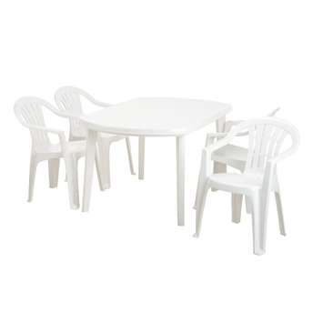 Onbezorgd tafelen met de tafel Elise wit. De tafel is gemaakt van kunststof en is dus weerbestendig en onderhoudsarm. De ovale tafel is 137 cm lang, 90 cm breed en 73 cm hoog. Te combineren met stoelen van de lijn Cuba voor een complete tuinset. De tafel is beschikbaar in wit en groen. Kortom, met de tafel Elise wit creëert u een eenvoudige tafelgelegenheid in uw tuin, aan een onklopbare prijs.