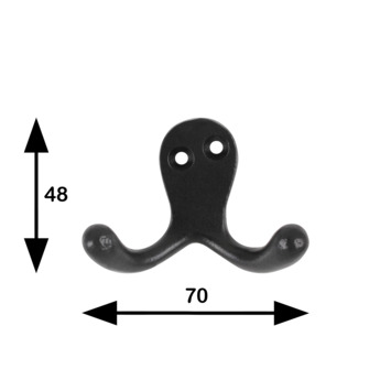 Een moderne jashaak? Gevonden! De jashaak Tess is een moderne dubbele ophanghaak, gemaakt uit ijzer in de kleur zwart. De ijzeren jashaak kan tot 1 kilogram aan jassen en tassen dragen en wordt geleverd met schroeven, zodat je 'm meteen kan bevestigen aan je muur. Ook verkrijgbaar in andere materialen en kleuren, maar altijd goedkoop en lekker oldskool.