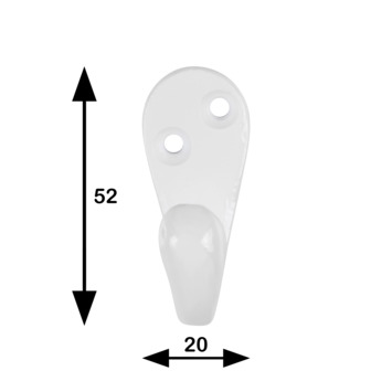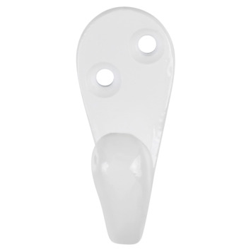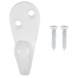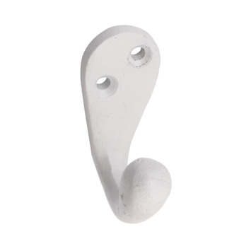 Stevige haakjes, mooi wit en rond. Met bijbehorende witte schroefjes. Gebruikt op een kinderkapstok.
